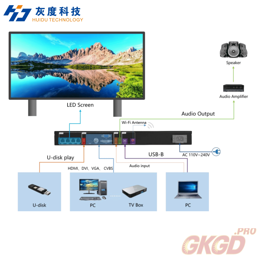 3). 5 kênh đầu vào video kỹ thuật số và tương tự, USB phát trực tiếp các tập tin video và hình ảnh;