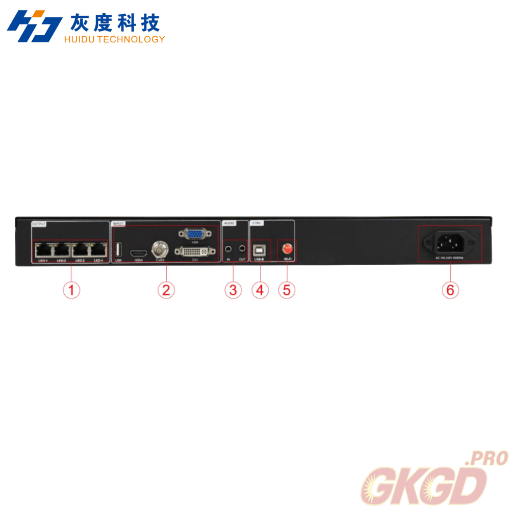 Cổng Ethernet Gigabit Tốc độ truyền 1Gbps, được sử dụng để kết nối các thẻ nhận theo dạng cascade, truyền dòng dữ liệu RGB Một cổng Ethernet Gigabit hỗ trợ dung lượng tải lên 655,360 pixel |