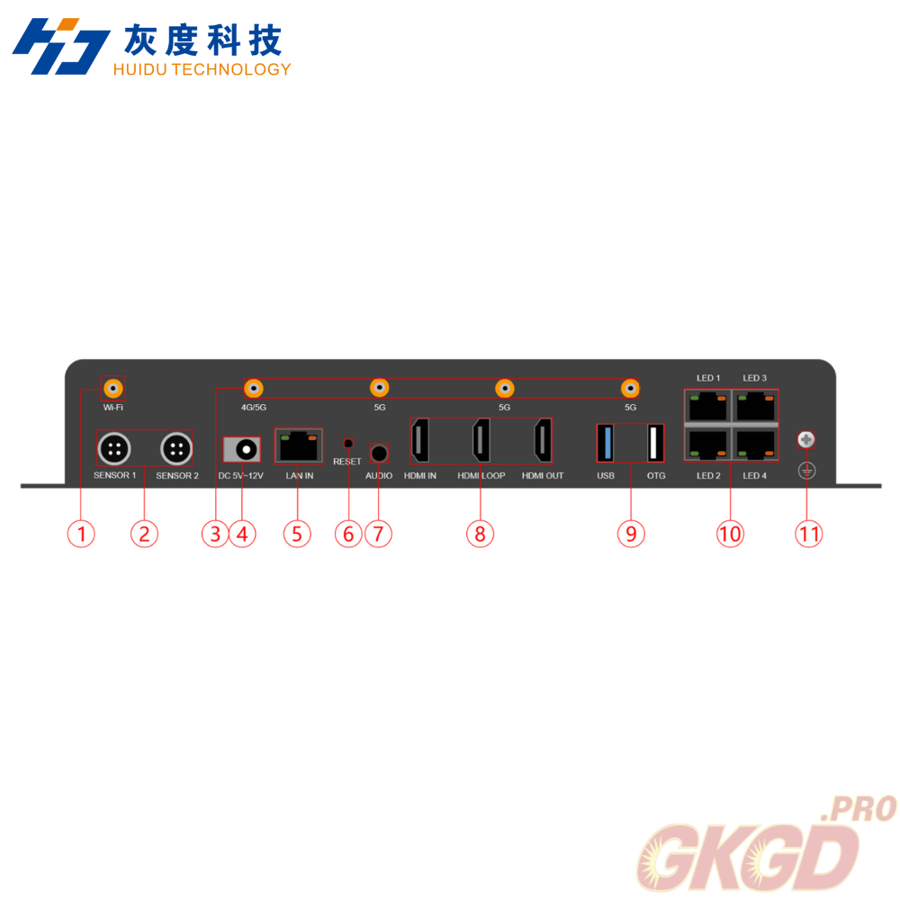 | 10 | Cổng mạng ra | Cổng mạng đầu ra Gigabit, được kết nối theo dạng dây xếp với bảng nhận dữ liệu dòng HD-R series. |