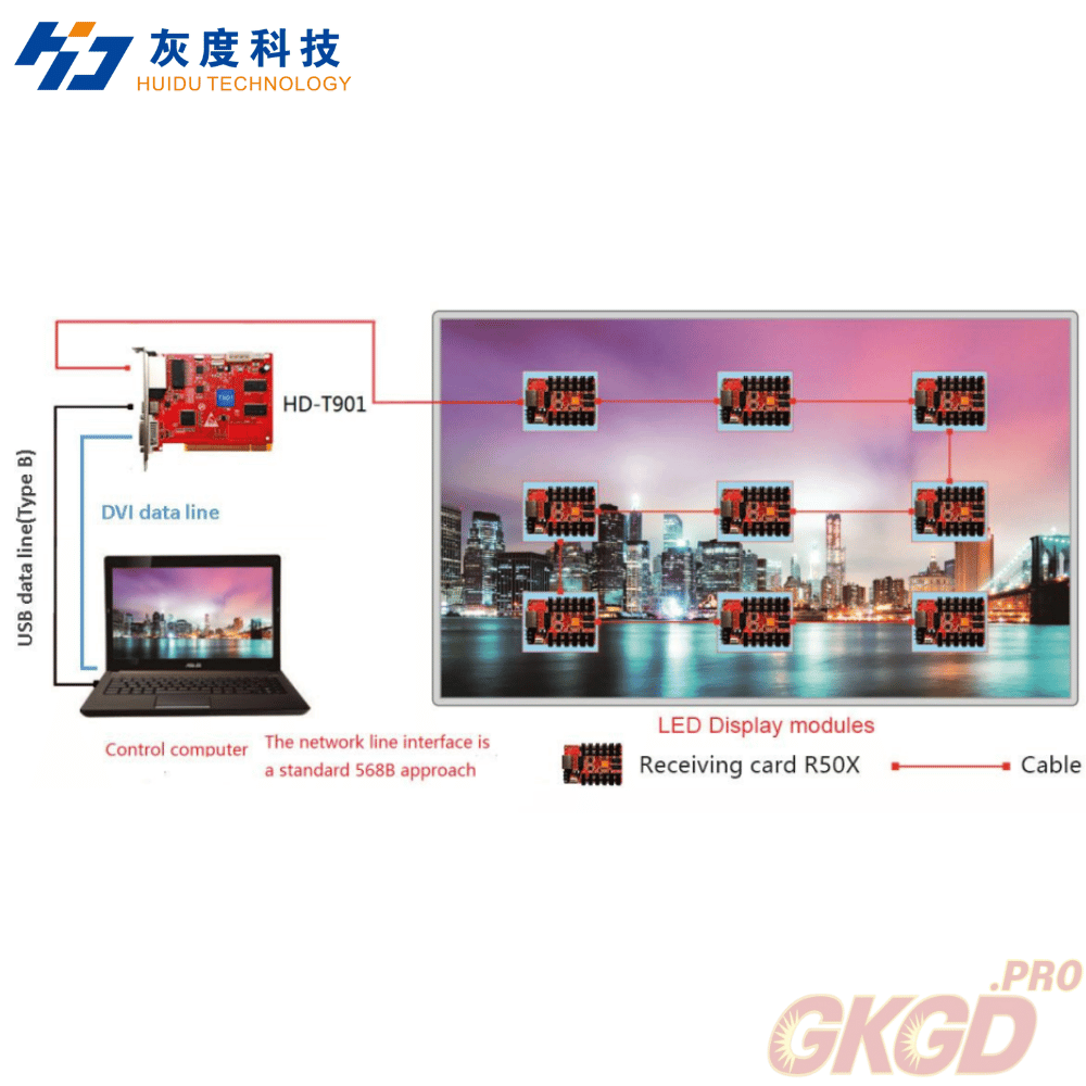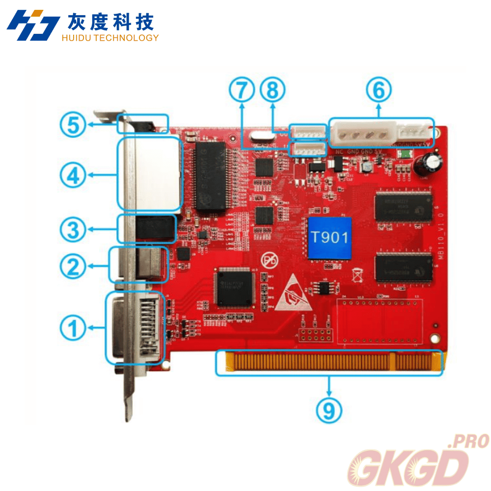 HD T901 là một card phát đồng bộ của Huidu, được kết nối với thẻ nhận dạng R50X series để kết nối với màn hình LED. Dưới đây là chi tiết sản phẩm