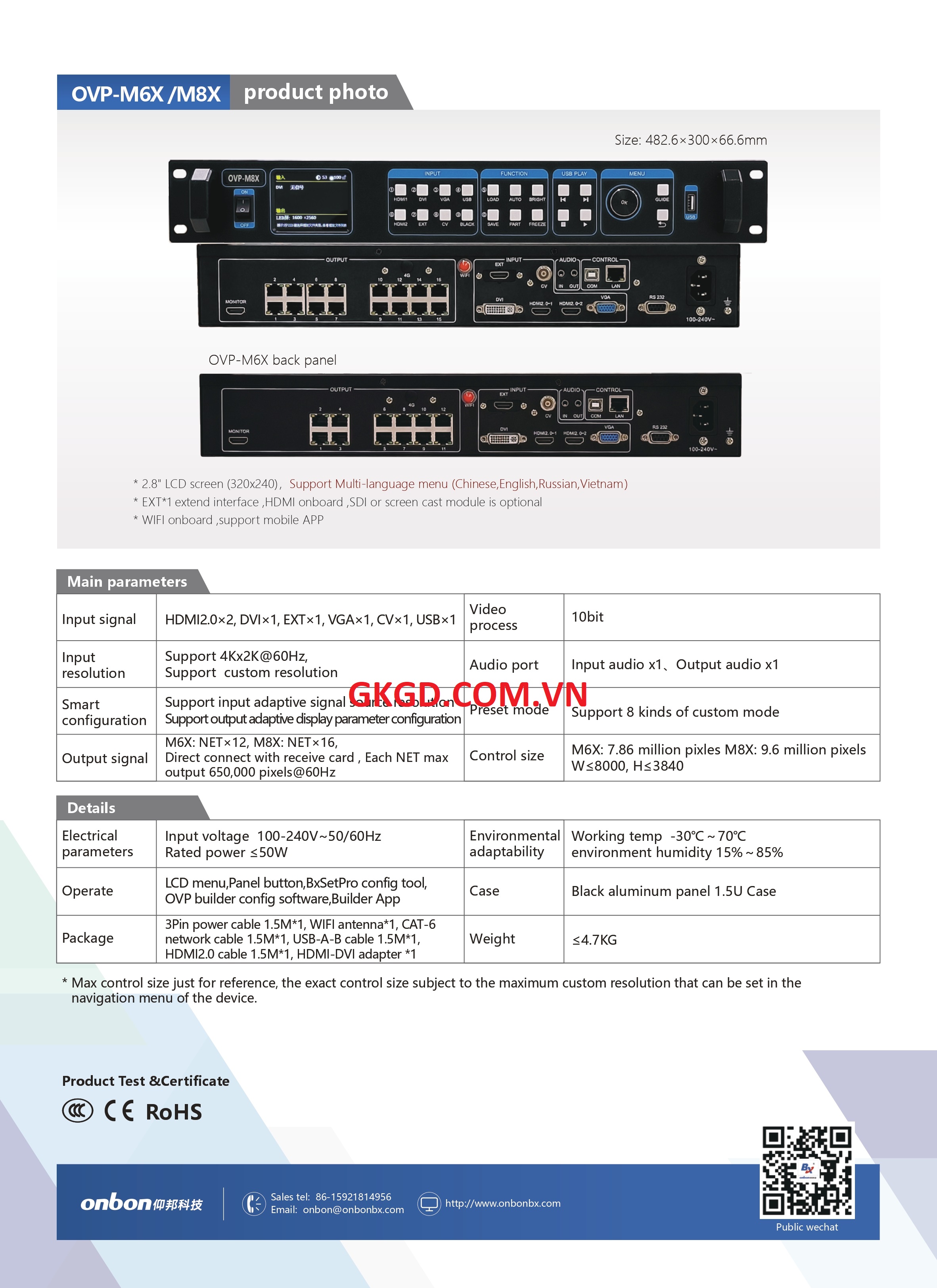 BX OVP M6X không chỉ là bộ xử lý thông thường mà còn là nguồn động lực mạnh mẽ cho hệ thống giải trí của bạn. Với điện áp vào linh hoạt từ 100-220V AC và khả năng điều khiển lên đến 7.6 triệu pixel, đây là sự lựa chọn đáng kể cho mọi nhu cầu sử dụng.